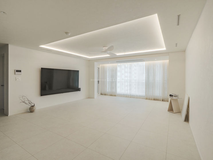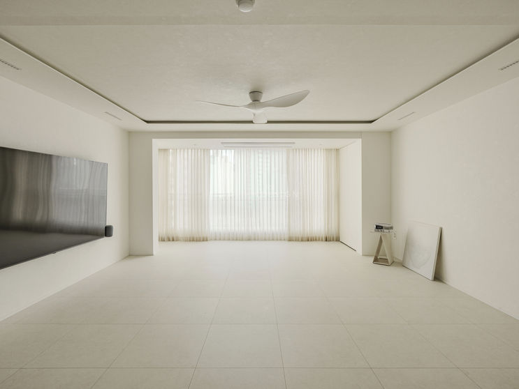 화이트 톤을 기반으로 한 미니멀한 공간에 세라믹, 브론즈, 우드 소재를 더해 절제된 고급감을 완성한 간접조명과 라인 조명을 활용해 공간에 깊이를 더하고, 전체적으로 밝고 정돈된 분위기를 유지하면서도 단조롭지 않도록 구성했습니다.|
