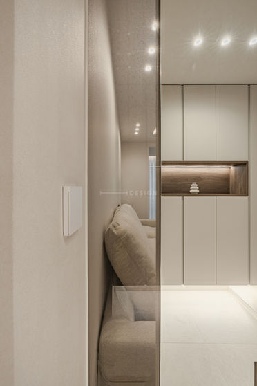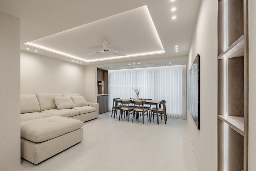 기존 구조를 정리하고 주방과 다이닝, 거실이 자연스럽게 이어지도록동선을 재구성해 공간 활용도를 높였습니다. 주방은 ㄱ자 구조를 기반으로 수납과 작업 동선을 효율적으로 계획하고, 세탁실과의 연결도 간결하게 정리해 사용성을 고려했습니다. 라인 조명과 간접 조명을 활용해 고급스러운 분위기를 유지했으며,우드 마감과 어우러져 안정감 있는 무드를 완성합니다.